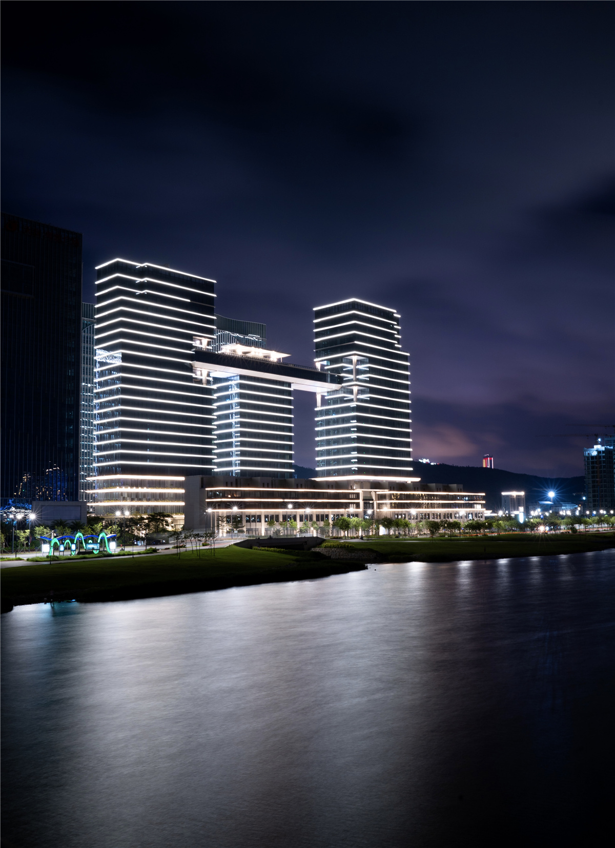 珠海橫琴宇信大廈綜合體開發(fā)項目位于珠海南部,優(yōu)越的地理位置可欣賞到新建的人工 水道與南海相連的入水口。設(shè)計了多種概念以展現(xiàn)不同形態(tài)的住宅、零售和辦公環(huán)境,因此,力求把這些概念融 合成生活/工作/商業(yè)的一個整體是我們設(shè)計這個項目的基 本驅(qū)動力。